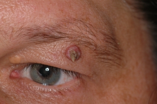 Recomiendo la resección por dos razones. Primero hay que parar el rápido crecimiento del tumor, que puede invadir el párpado entero. Segundo no podemos excluir la posibilidad que se trata de un Carcinoma espinocelular. La resección tiene que incluir la base del cráter con márgenes sanos en la histopatología. Las técnicas de reconstrucción de defectos palpebrales está tratado en el capítulo 2.2 RECONSTRUCCIÓN DE DEFECTOS TUMORALES