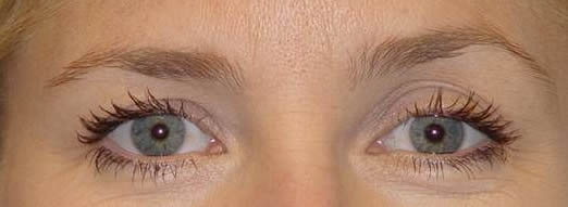Fig.4: Después de la operación de la ptosis el párpado izquierdo ha subido 1 mm, la ceja ha bajado 2mm y el surco ha bajado 3mm a un nivel simétrico. |