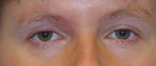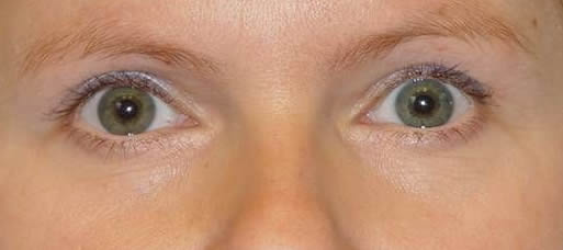 Fig. 1: Párpados superiores a 2 mm del centro de la pupila, que corresponden a un nivel bajo, pero todavía normal. |