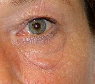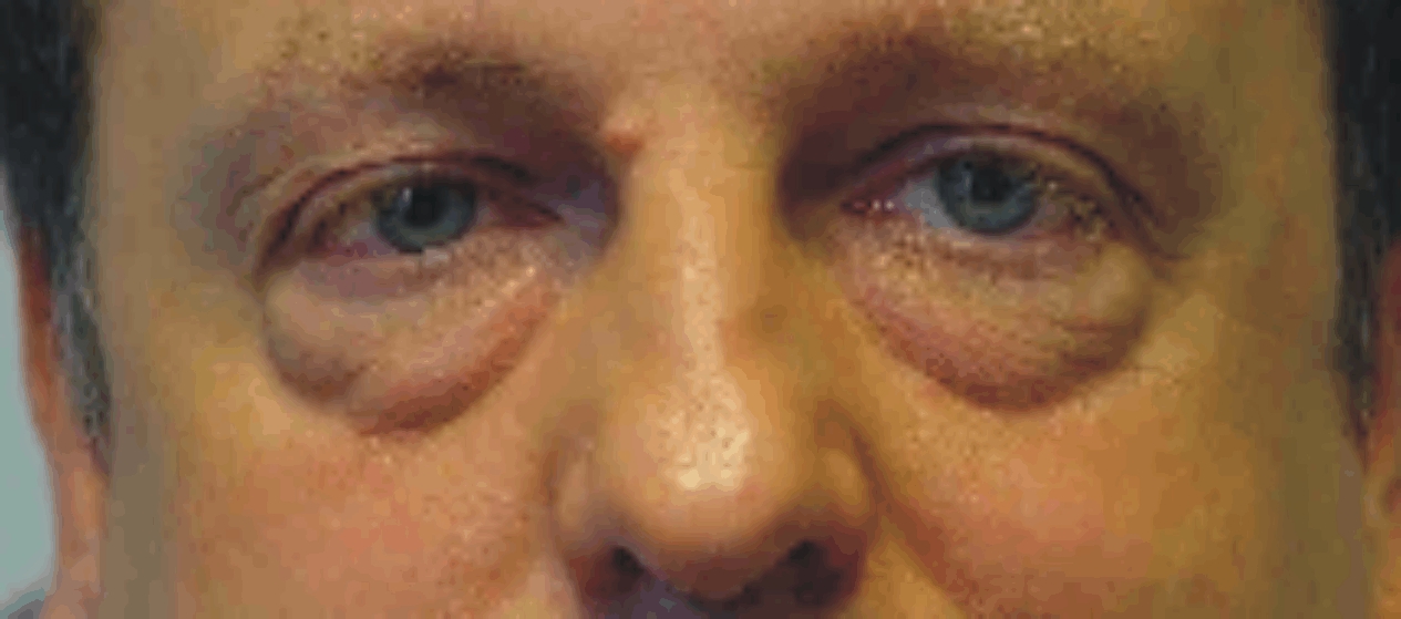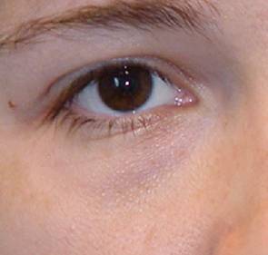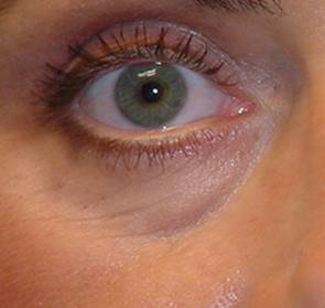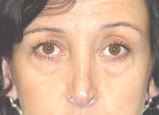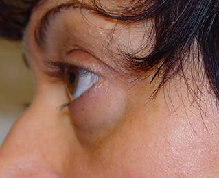 Fig. 16: Antes de operar: bolsas de grasa poco marcadas, surco orbitomalar marcado. |