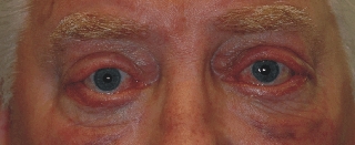 Fig.7: Antes de operar: descenso del los párpados inferiores por laxitud del tejido conectivo. |