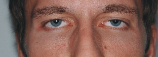 Fig.8: Después de operar: elevación del los párpados inferiores a una posición normal. |