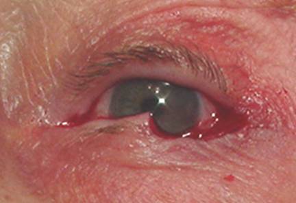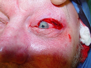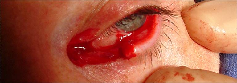 Fig. 6: La reconstrucción la zona precorneal (zona III) es la más compleja. Hay que reconstruir dos lamelas con estabilidad del margen palpebral. |