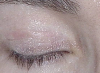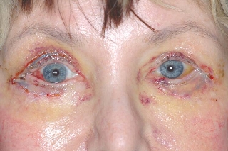 Fig. 4: Injertos de piel en ambos párpados superiores. |