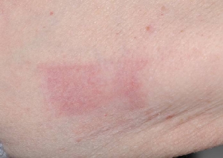 Fig. 7: Resultado del corte con el dermatoma de 0,3 mm de espesor. Se puede observar la transparencia de la piel, similar a la piel natural de los párpados. La retracción se produce solo en un 15 % de los casos por la reducida elasticidad de la piel del brazo. |