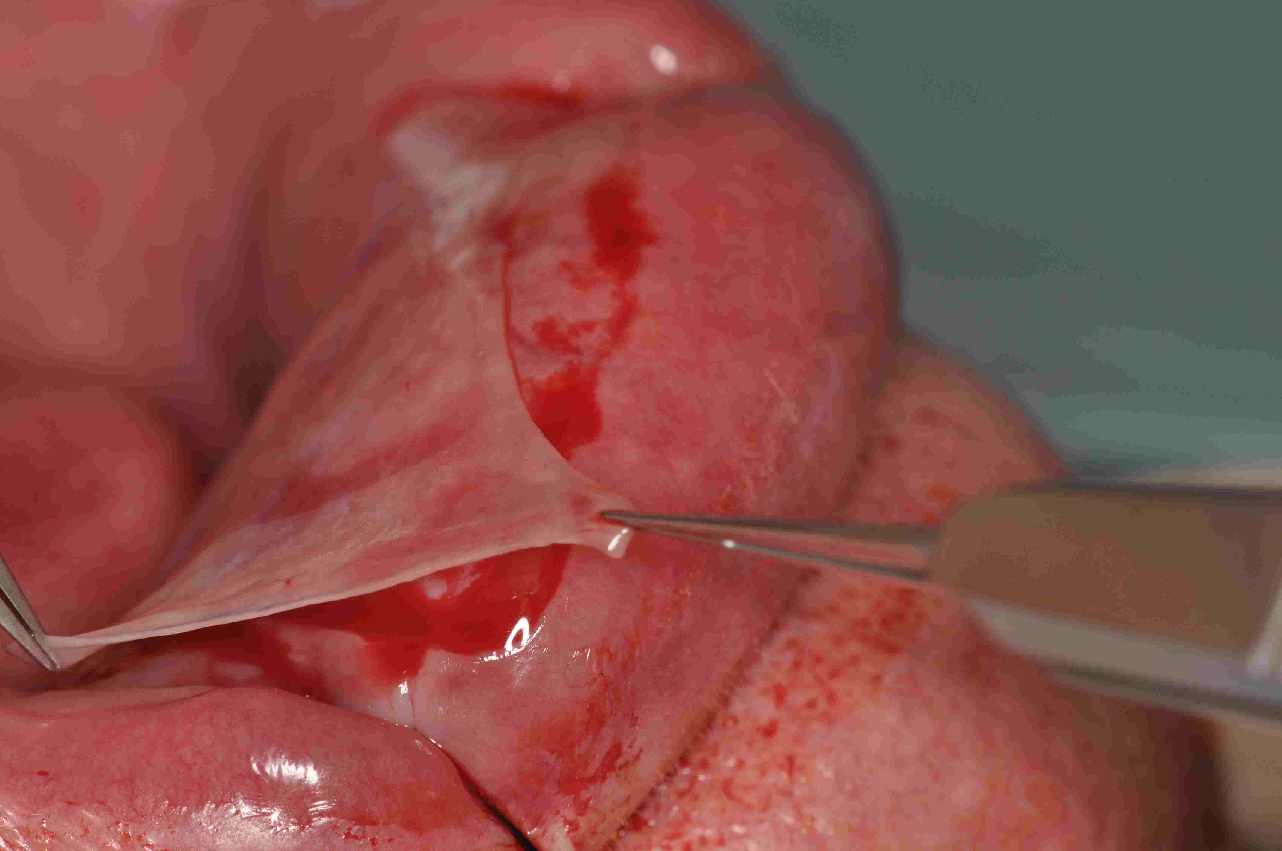 Fig. 6: Corte de 0,5 mm espesor de mucosa labial con un mucotomo de 50 mm de anchura. |