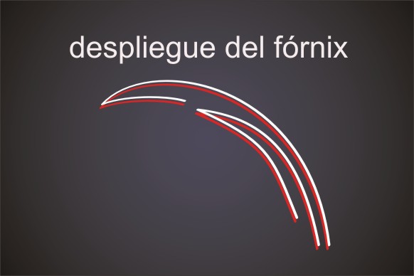 Fig. 3: Despliegue del foórnix (fondo del saco conjuntival). Para permitir el movimiento del ojo los fondos de saco se plieguen y desplieguen. El dibujo muestra el fornix superior que cambia su posición con el movimiento del ojo y del párpado. |