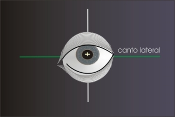Se caracteriza por los tres ejes que atraviesan el centro del globo ocular y tienen especial importancia en la posición del canto: el eje óptico, el eje horizontal y el eje vertical. Cada eje forma un polo en la suferficie ocular, el vértice del canto lateral se encuentra ligeramente superior al polo lateal del eje horzontal, dicho vértice forma, en condiciones normles, un ángulo agudo de aproximadamente 35° - 45°. En la mirada hacia arriba la posición del vértice del ángulo se mantiene fija, mientras que la apertura del ángulo cambia a un ángulo de 90°, esto es normal y se debe a la incapacidad del párpado inferior de seguir completamente la rotación del globo hacia arriba.