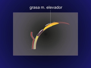 En todo los casos la presencia de grasa degenerativa complica la corección quirúgica, porque el aumento de grasa está asociado a una falta de tejido fibroelástico como la aponeurósis y el ligamento de Whitnall y una infiltración del tejido muscular.