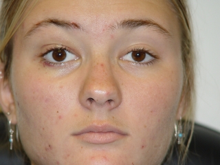 Una ptosis unilateral causa normalmente la elevación compensatoria de la ceja, cuando el ojo es dominante. En la ptosis unilateral, la ceja del ojo de la ptosis suele estar mas elevada que la contralateral, porque el paciente relaja más el músculo orbicular en el lado de la ptosis. En el preoperatorio debemos observar si hay una elevación espontánea de la ceja y evaluar cual de los dos ojos da el estímulo para la elevación. Incluso si el ojo de la ptosis es ambliope, el otro lado puede padecer una mínima ptosis y entonces dar el estímulo de la elevación (Fig.1). En este caso se puede corregir la ptosis directamente con una supensión al frontal como única intervención (Fig. 2). Hay que diferciar los casos, que no muestran la elevación compensatoria por falta del estímulo del ojo dominante (Fig. 3). Aquí tenemos que comprobar si podemos crear el estímulo mediante el test del esparadrapo, que provoca una ptosis moderada (Fig 4).
