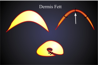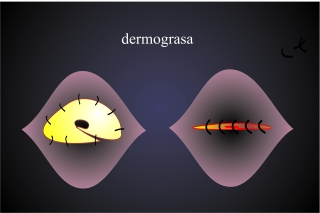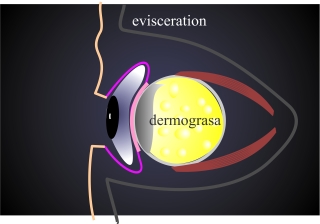 Con un injerto de dermograsa podemos evitar los problemas que ocurren frecuentemente en implantes sintéticos, como rechazo, extrusión ó infección. Ademas la superficie de la dermis, si al orientamos hacía adelante, se cubre gradualmente con conjunctiva y nos sirve para aumentar la superficie conjuntival sin tener que injertar mucosa. El tejido de grasa subcutaneo suele perder parte de su grosor en las semanas postoperatorias. Otra indicación para aprovechar un injerto de grasa es la formación de un surco entre el párpado superior y la ceja. Este surco esta causado pro falta de volumen de tejido orbitario.