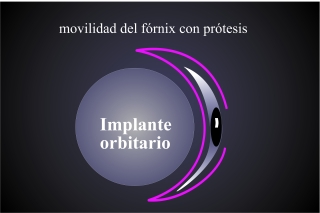La falta del globo ocular y la reducción del volumen orbitario permite un descenso del músculo elevador, que pierde su curva de tracción y su efecto de elevación. Para restaurar la curva de elevación del músculo elevador hay que introducir un implante esférico con un diámetro de 16 a 22 mm en la órbita. Como material del implante pse puede elegir PMMA, hidroxiapatita, polietileno poroso, silicona. Es recomendable envolver el implante con un tejido autólogo de fibras colágenas (esclera o fascia lata)