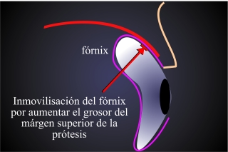 Fig.5: Fórnices llenos por el volúmen de la prótesis pierden su movilidad. La prótesis con más volumen llena los fornices y los quita la movilidad de plegar y desplegar. |