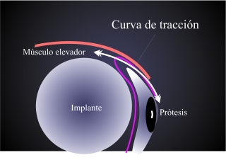 Fig.8: Para restaurar la curva de elevación del músculo elevador hay que introducir un implante esférico con un diámetro de 16 a 20 mm en la órbita. |