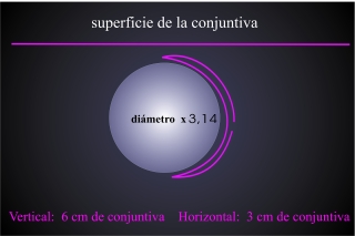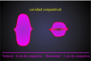 Fig.3: La extensión vertical de la conjunctiva es de 3x6 cm (izquierda: conjunctiva despliégada; derecha: conjuntiva plegada para formar el los sacos conjuntivales)