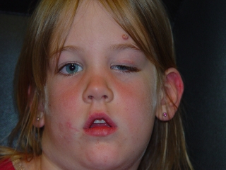 Fig.4: Si el bloquéo del conducto de Meibom está cerca del margen palpebral, se puede formar un granuloma en el margen palpebral. La cirugía es más dificil, porque hay que evitar de lesionar los follículos de las pestañas.. Esto se consigue con un acceso transmarginal o subciliar. |