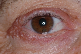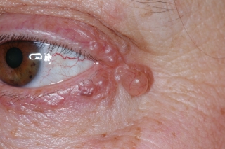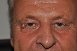 Fig.1.: Hidrocistomas típicos en al párpado inferior cerca de los cantos |