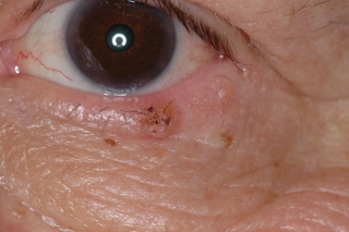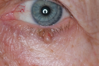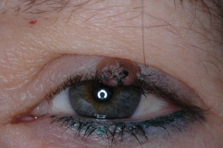 Fig.2: Papiloma típido con papilas dentríticas. Tiene color de piel porque nace de la piel palebral. |