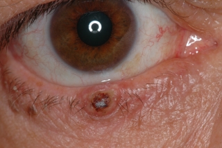 Recomiendo la resección por dos razones. Primero hay que parar el rápido crecimiento del tumor, que puede invadir el párpado entero. Segundo no podemos excluir la posibilidad que se trata de un Carcinoma espinocelular. La resección tiene que incluir la base del cráter con márgenes sanos en la histopatología. Las técnicas de reconstrucción de defectos palpebrales está tratado en el capítulo 2.2 RECONSTRUCCIÓN DE DEFECTOS TUMORALES