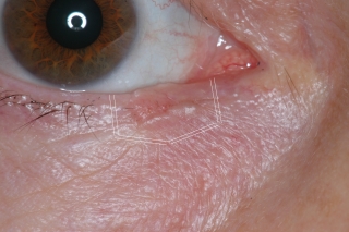 Fig.3: En el epitelioma basocelular la resección tiene que incluir un márgen de 3 mm de tejido con aspecto sano. En carcinomas y melanomas el margen tien que más amplio.