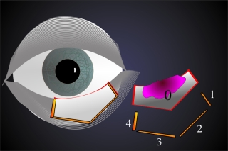 Fig.1.: Técnica de Mohs con cuatro lados de excisión marginal: medial, medial inferior, lateral inferior y lateral