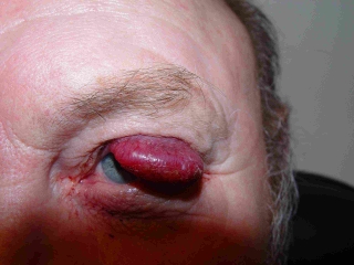 Fig. 1: Típico aspecto de un Merkel cell tumor, que ocupa el párpado superior. |