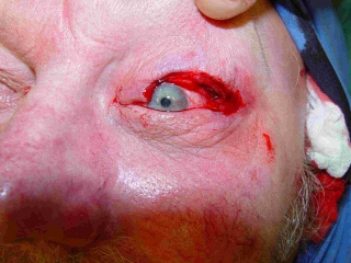 El margen de seguridad tiene que ser 7-8 mm fuera del tumor visible. Para la reconstrucción del párpado superior se puede formar un colgajo de lamela posterior del párpado inferior, que incluye retractores y conjuntiva. Se conecta con el fornix superior para cubrir entero el globo ocular y sirve como base para un injerto de piel.