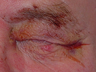 Fig. 6: Postoperatorio: Cierre intacto del párpado superior reconstruido. |